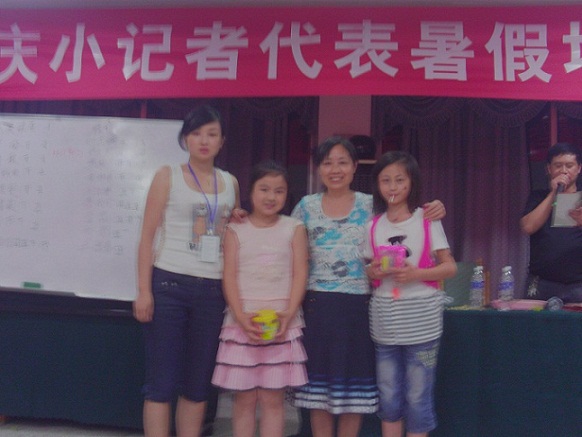 小记者金沿伶和程鳞雯与重庆小记者协会老师难忘留影