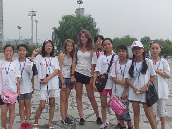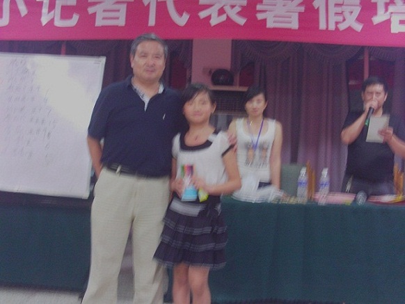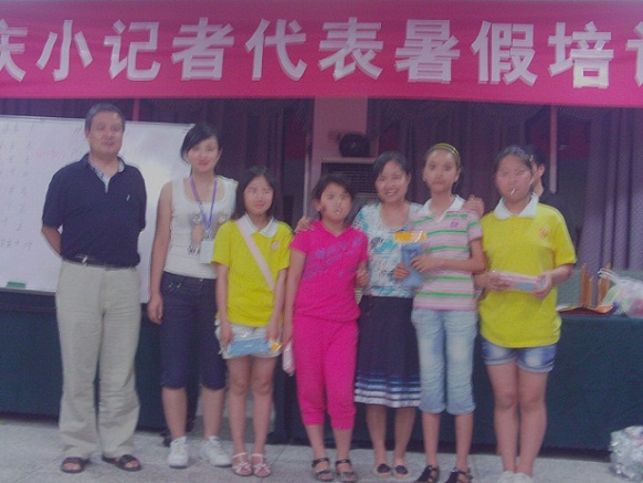 重庆小记者在“第六届全国优秀小记者评选大赛”中与外国友人留影。