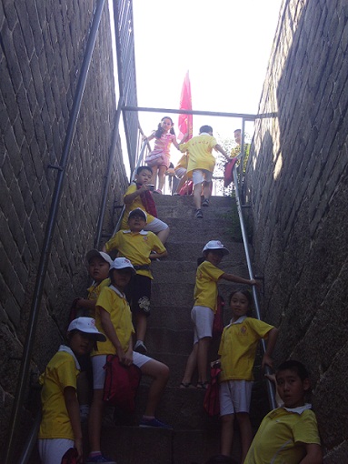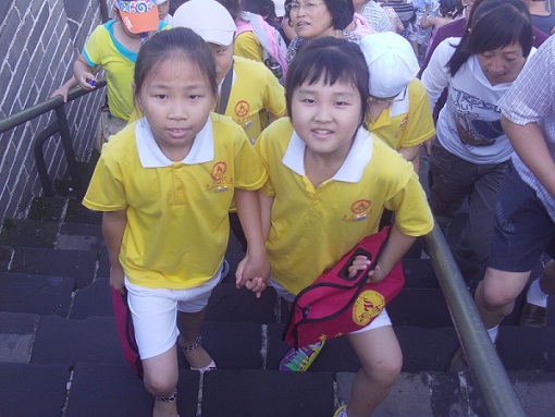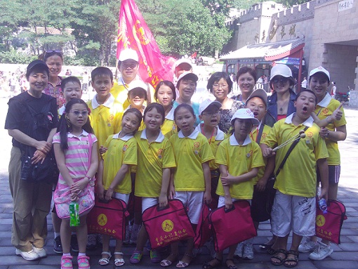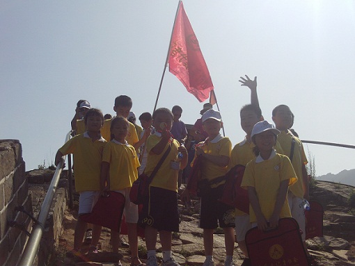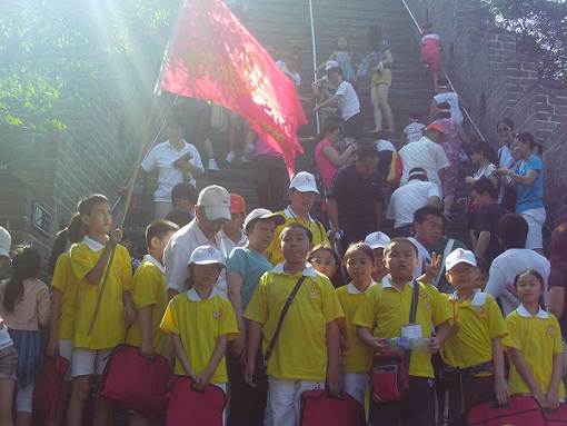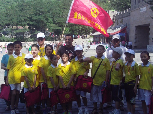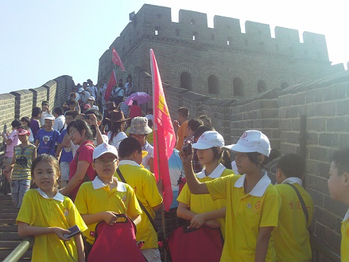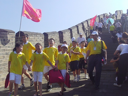 “2010年相约北京采访大行动”中,登长城传递友谊接力赛留念之九(小记者与外国人留影)