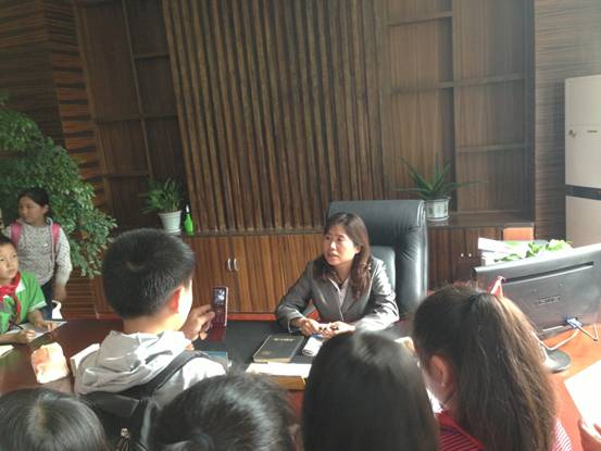 少年新闻学院重庆分院的小记者一行在重庆教科院华渝实验小学办公室采访任校长。