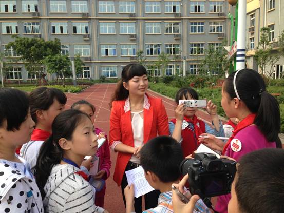 图为:小记者正在向李主任提问采访。 本网讯(小记者 周晨宇 文/图)2013年5月3日下午4点,在重庆教科院华渝实验学校操场上,华渝实验学校德育处李主任接受了来自中国少年新闻学院重庆分院的小记者们采访。采访中,李主任主要针对小记者提出的学习枯燥、厌学的问题进行了详细解答,并归纳出一句话送给小记者——“有一种成功叫做坚持”,让小记者们颇受感动,并铭记在心!采访结束后,小记者感叹道:这种采访很有意思,不仅增进了师生之间的沟通交流,更重要是提高了小记者的胆量,练习了采访技巧。小记者们希望以后更多地参加采访实践活动。 |