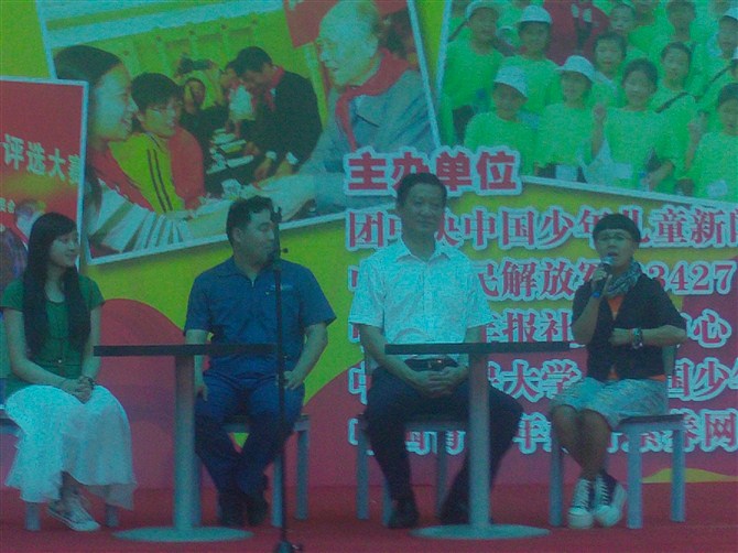 “第六届全国优秀小记者评选大赛”中,著名主持人金龟子、中国少年儿童新闻出版总社社长李学谦、空军部队基地领导、少年新闻学院学子接受小记者采访。