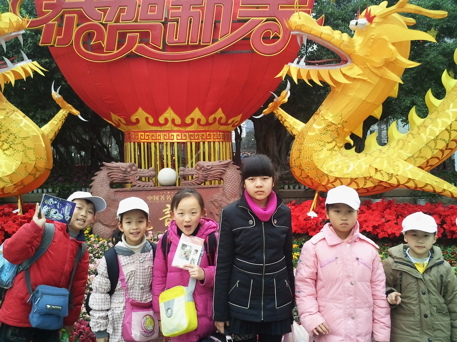 小记者2012寒假在红色娘子军纪念碑前留影。