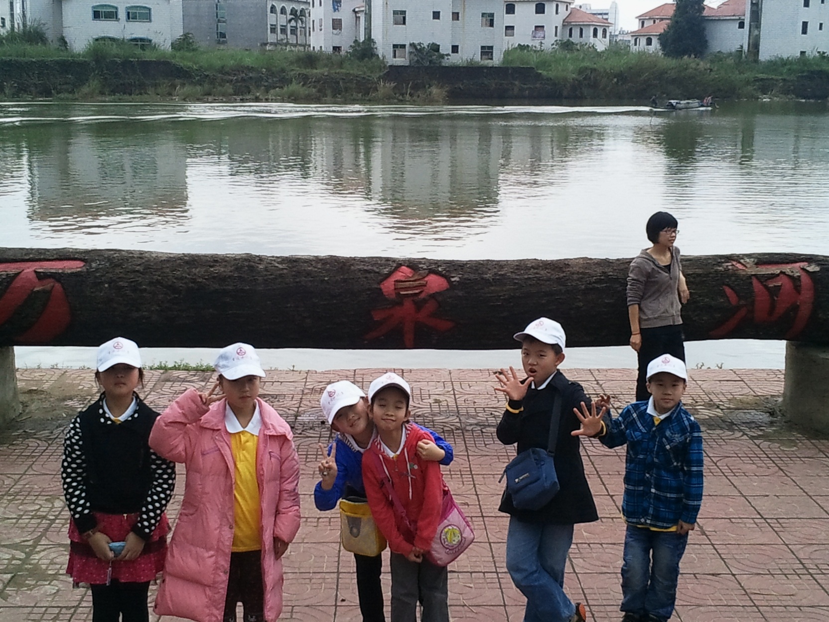 “2012寒假海南实践采访活动”中,小记者在观音桥留影。
