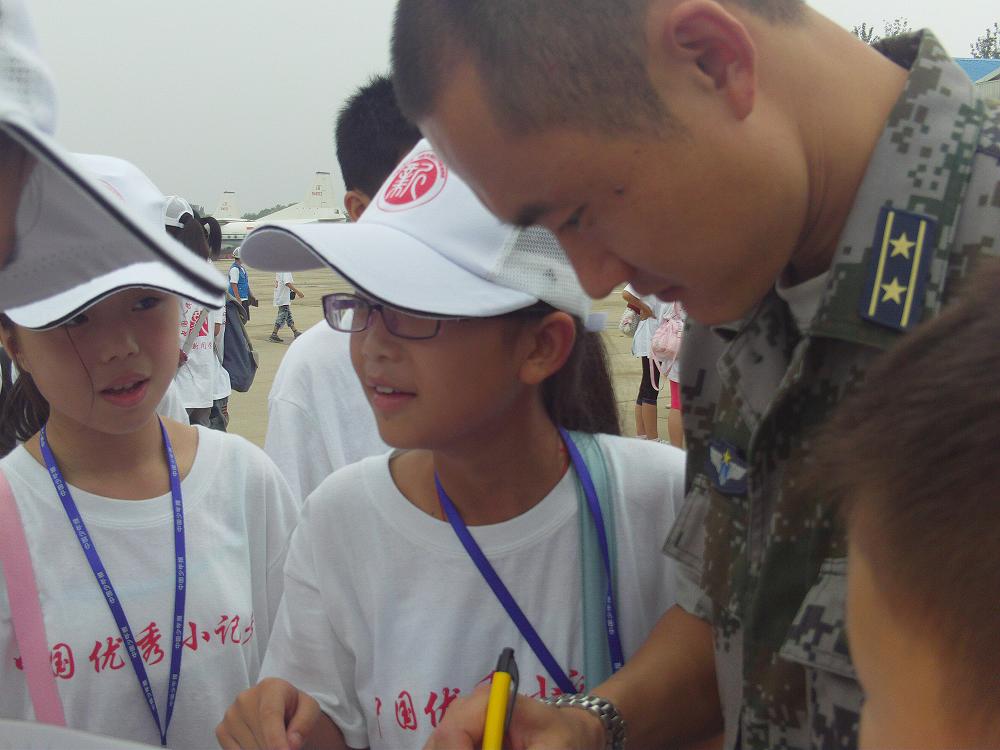 重庆小记者参加“第六届全国优秀小记者评选大赛”,采访空军飞行员。