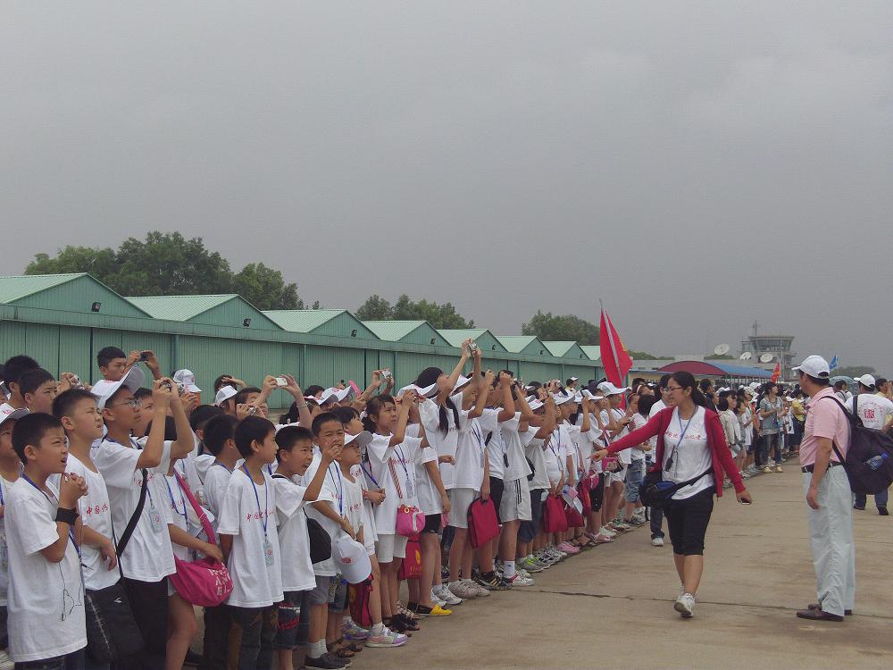 重庆小记者参加“第六届全国优秀小记者评选大赛”,观看空军飞行表演。