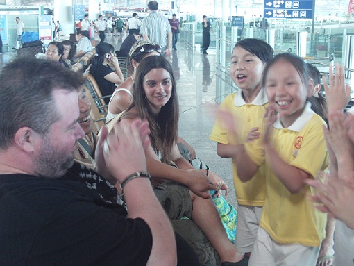 小记者北京首都机场采访到中国旅行的一家人
